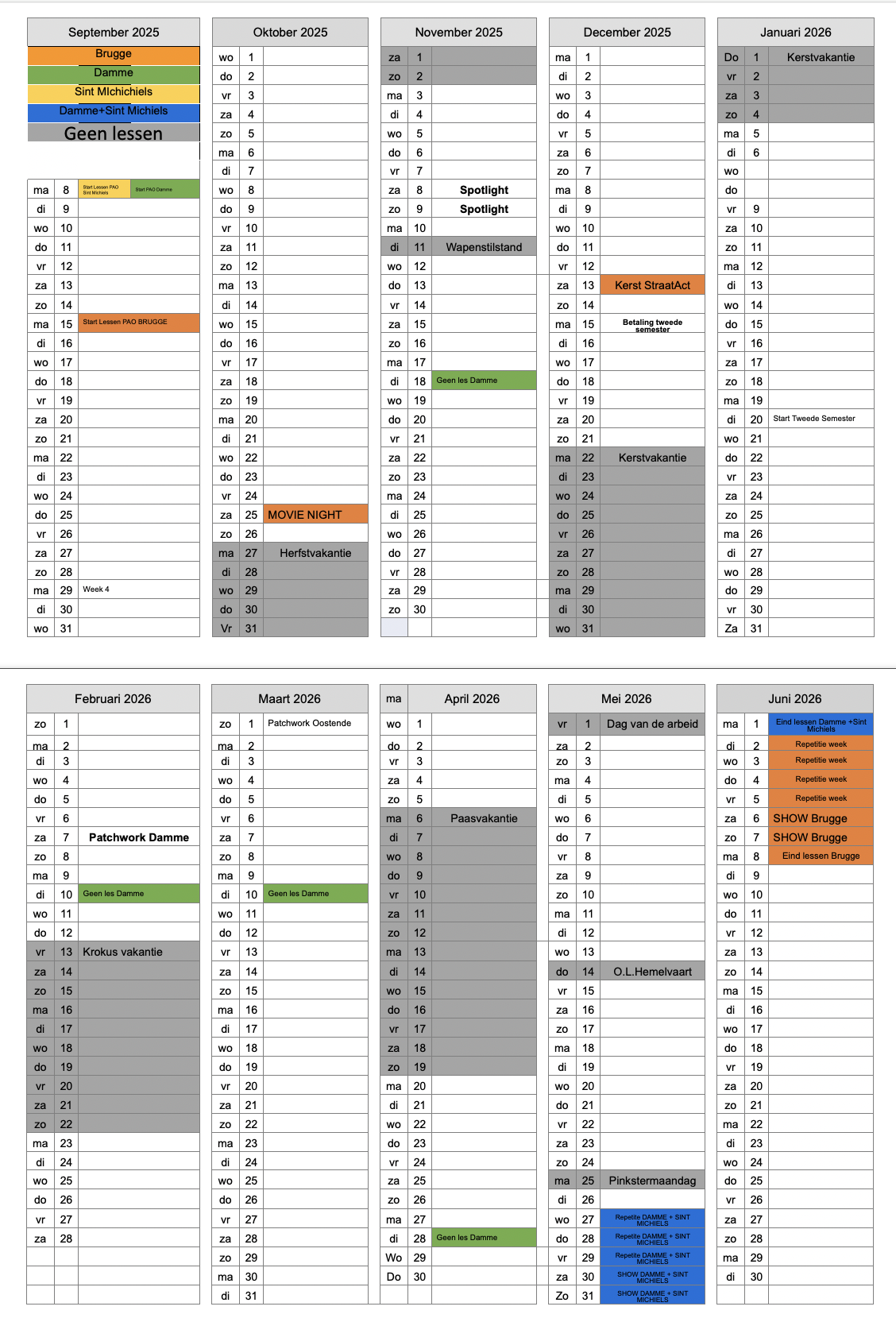 -Is verplicht om alle lessen en voorstellingen aanwezig te zijn.